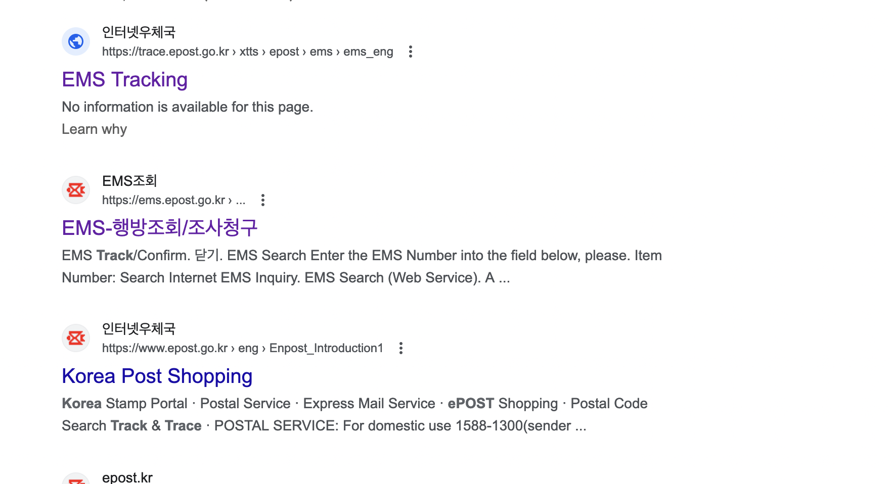 정확한 확인 방법은 아래에서와 같이 EMS 행방조회/조사청구 사이트를 이용하면 되는데,